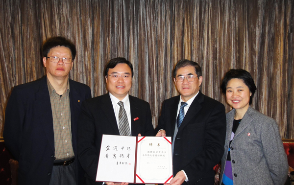 丘进校长为张健中博士(左二)颁发华侨大学客座教授聘书