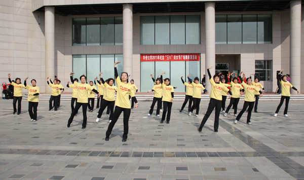 8日下午,春风怡人,阳光灿烂。我校2011年纪念“三·八”节女教职工广场舞表演在厦门校区隆重登场,共有17支队伍300余名女教职工齐聚行政主楼西侧广场参加演出。