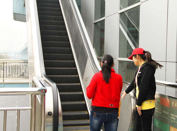 在乘坐BRT的进站电梯时,如何让有急事的乘客优先乘坐左侧的电梯,让时间较充裕乘客站立电梯右侧等待,或者走右边的楼梯,由此在市民当中形成一种“左行右立”的自觉让道习惯,我校信息学院青年志愿者为此积极与BRT站合作,在快1线、快3线共计19个站点当起了义务的“文明乘梯引导员”,向广大市民来宣传“左行右立”的做法和习惯。