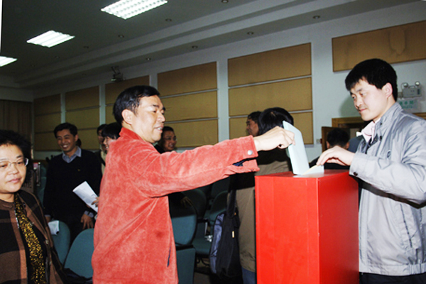 随后,参会人员对学校领导班子及班子成员年度工作、学校干部选拔任用工作及2010年新提拔处级干部进行民主测评。