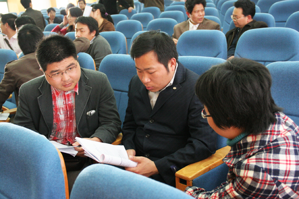 企业代表与我校项目负责教师进行对接洽谈