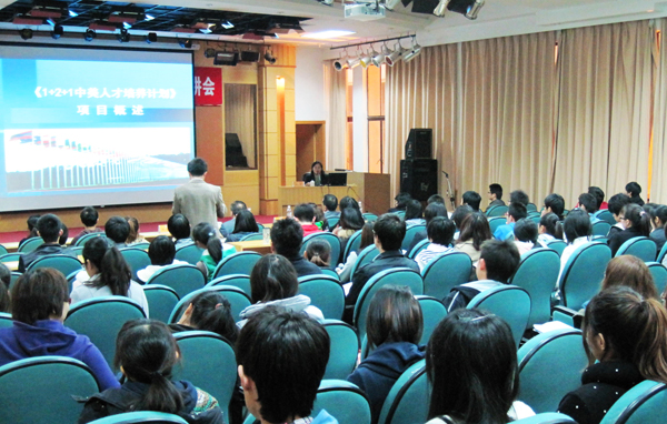 项目宣讲会当晚在陈嘉庚纪念堂科学厅举行。项目总监王颖以图文并茂的方式,向学生详细讲解了该培养计划的创建、内容和发展,合作院校的相关情况及中国留学生在合作院校的学习、生活状况。她同时列举了大批赴美留学归国学生的真实事例对项目的前景进行分析,并解答了与会学生对该项目的疑问。