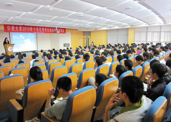 经过前期的网络投票及当天的现场答辩,文学院07级本科生孙祎妮、经济与金融学院09级研究生陈新镇、工商管理学院09级研究生易爱娣、华文学院07级本科生伍锬桐、信息科学与工程学院08级本科生杨雅星、机电学院09级研究生江晓玲、旅游学院07级本科生柴娅男、经济与金融学院08级本科生骆灵珊、机电学院07级本科生陈锋及化工学院08级本科王光亚十名同学最终获“华侨大学2010年十佳优秀学生标兵”荣誉称号。