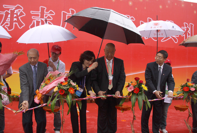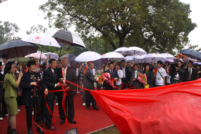 华侨大学董事会副董事长陈守仁、陈成秀、陈捷中,华侨大学党委书记李冀闽,董事会副秘书长蔡素玉共同为廖承志广场牌匾揭牌。