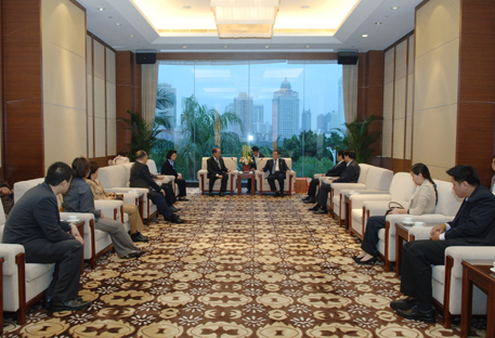 丘进校长在厦门马可波罗酒店会议厅会见巴育先生一行。