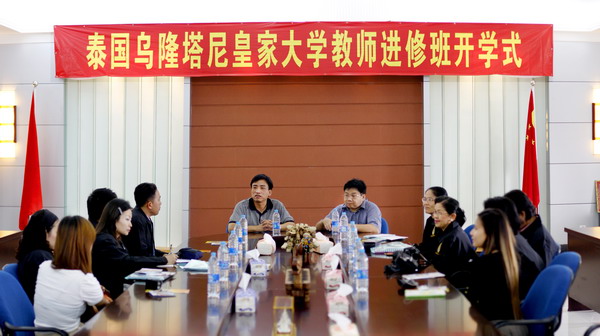 10月11日上午,泰国乌隆塔尼皇家大学教师进修班开学式在华侨大学华文学院一号楼会议室举行。华文学院副院长陈旋波、培训部主任李金钞等出席了开学式。