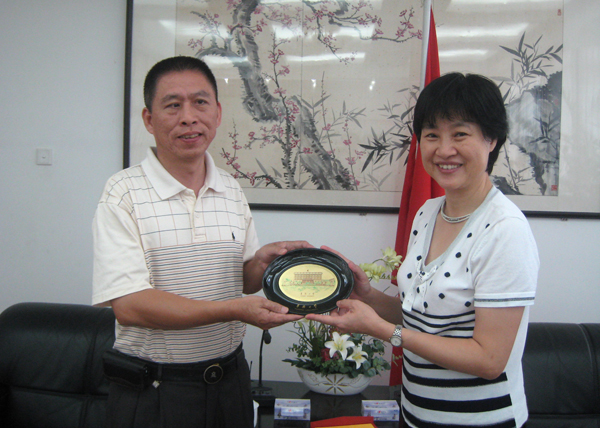 9 月10 日,台湾中华文化经贸交流发展协会理事长黄春林以及许忠俊秘书长来校交流访问。校党委副书记朱琦环在李克砌纪念楼四楼接待室会见黄理事长一行。