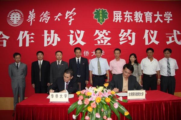 华大的师生可以到师资力量雄厚的台湾屏东教育大学开展学术合作与交流了。8月31日下午,华侨大学校长丘进与台湾屏东教育大学校长 刘庆中,分别代表双方高校在合作协议文本上签字。
