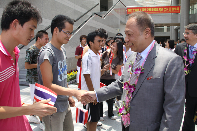 泰国外交部常务次长提拉昆与华侨大学学生握手交流