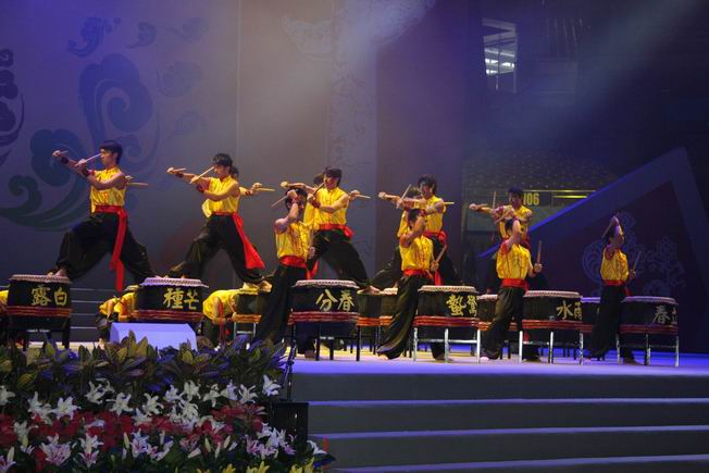晚会由我校廿四节令鼓队开场,代表中国古节令的二十四面大鼓,为鼓手击打出或交错或划一的鼓点,厚重的鼓声与古朴的动作交相映衬,擂打出磅礴的气势,令在场观众为之惊叹。会上,来自不同国家的华裔青少年分别表演了富有各自居住国文化特色的节目,整台晚会掌声、喝彩声不断。我校音乐与舞蹈学院王一茜同学作为女主持人与美籍华裔学生马嘉阳共同主持整场晚会。