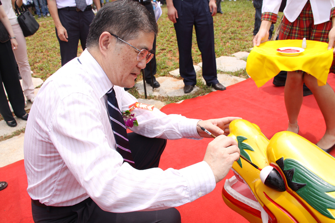 丘进校长为龙舟点睛(王舒人 摄)