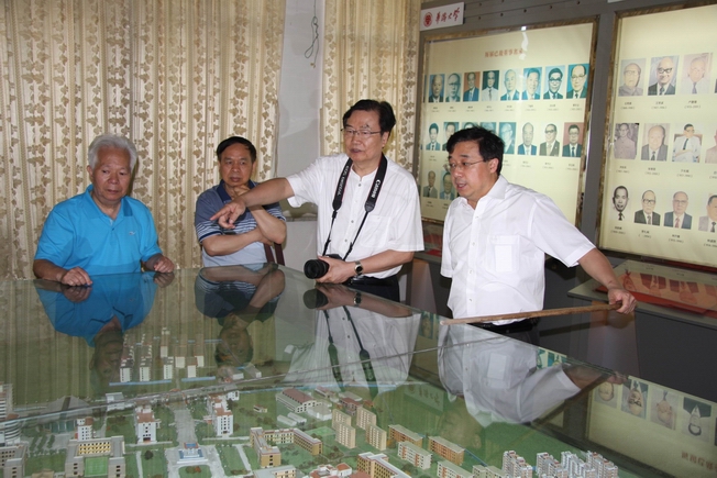随后,在老领导庄善裕的陪同下,颜泽贤一行参观了我校校史馆,了解华大 50 年来的办学历程。
