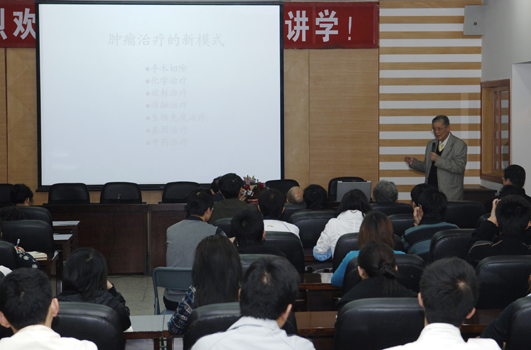 昨天下午,中国医学科学院、北京协和医院芮静安教授莅临我校,在陈嘉庚纪念堂二楼会议室作了题为《肿瘤治疗的新策略》的报告。