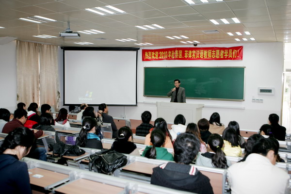 李晓洁副院长在会上做动员报告,她要求同学具有高度的责任感和使命感,树立大局意识,发扬团队精神、吃苦精神、敬业精神;要求同学在教学中潜心研究教学方法,教学态度严谨,教学内容精益求精,将中华文化贯穿教学之中,让学生在快乐中学习,在学习中感受中国文化的魅力。同时她勉励同学珍惜宝贵的海外教学实习机会,把所学的专业知识应用到华文教育实践中,在教学实践中提高自身的专业素质,通过实习更加深刻地认识对外汉语专业,热爱华文教育事业。
