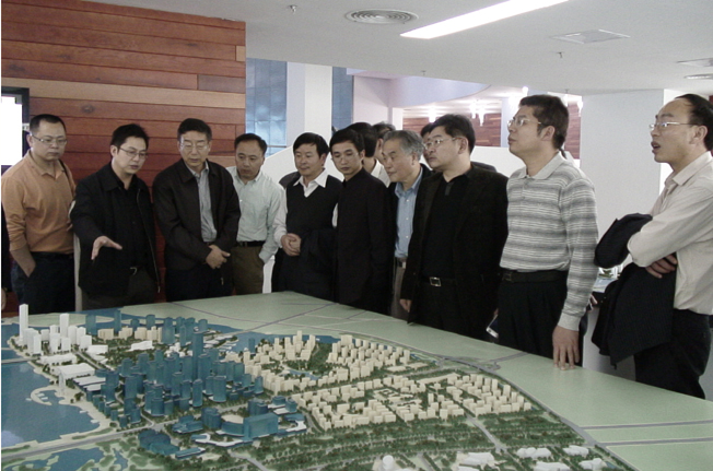 图为校领导和中层干部参观规划模型。
