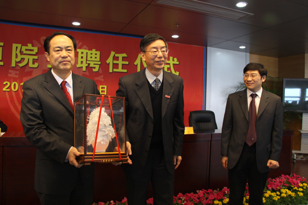 李冀闽书记向卢秉恒院士赠送纪念品 丁国炎副市长向卢秉恒院士赠送纪念品聘任仪式现场