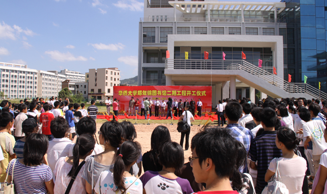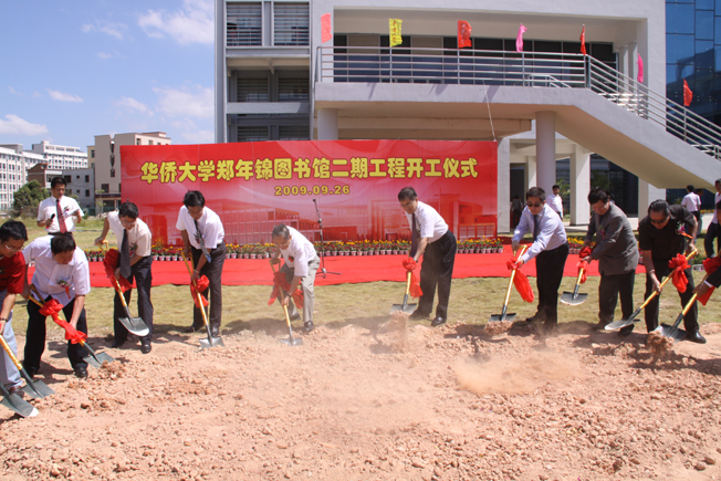 华侨大学厦门校区郑年锦图书馆二期工程昨日上午开工。工程建筑面积 17560 平方米,有 2000 个阅览座位,计划于 2010 年 10 月前建成。届时,郑年锦图书馆将集藏书、阅览、教学、科研、会议等多功能为一体,以自动化、数字化和信息化为标志,成为一座现代化综合性图书馆。