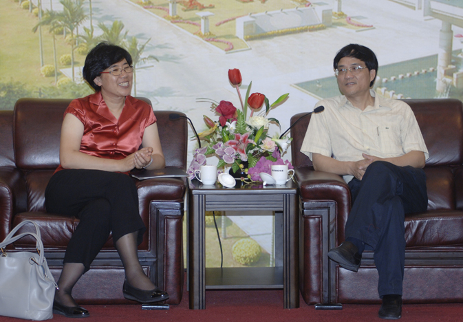 华侨大学副校长张禹东在陈嘉庚纪念堂二楼接待室热情接待来宾,向来宾介绍了华侨大学的发展概况、办学定位、两校区办学格局、学科建设、对外开展华文教育等情况。张禹东称,两校间相关院系学术交流密切,他代表校方感谢中国石油大学对华大学科建设的大力支持和帮助。