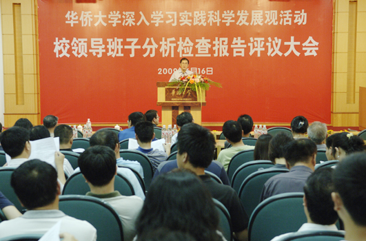 根据中央学习实践科学发展观活动的统一部署和安排,经校党委研究决定,并报请部属高校深入学习实践科学发展观活动第十指导检查组同意,昨日我校在陈嘉庚纪念堂科学厅召开群众评议大会,对《华侨大学领导班子贯彻落实科学发展观情况分析检查报告》进行评议。校长、校深入学习实践科学发展观活动领导小组组长丘进主持会议。