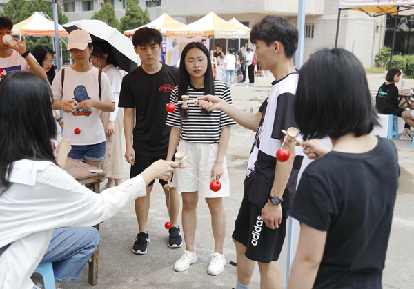 “我们几乎把所有关卡都体验了一遍。”工商管理学院2018级学生曾祥益与队友们正清点着手中的“葡券”,他们表示,通过游戏的方式,自己有了许多新体验,例如剑玉这样的小玩具、第一次学唱粤语歌等……话音刚落,他们便准备开始下一个游戏关卡的挑战了。