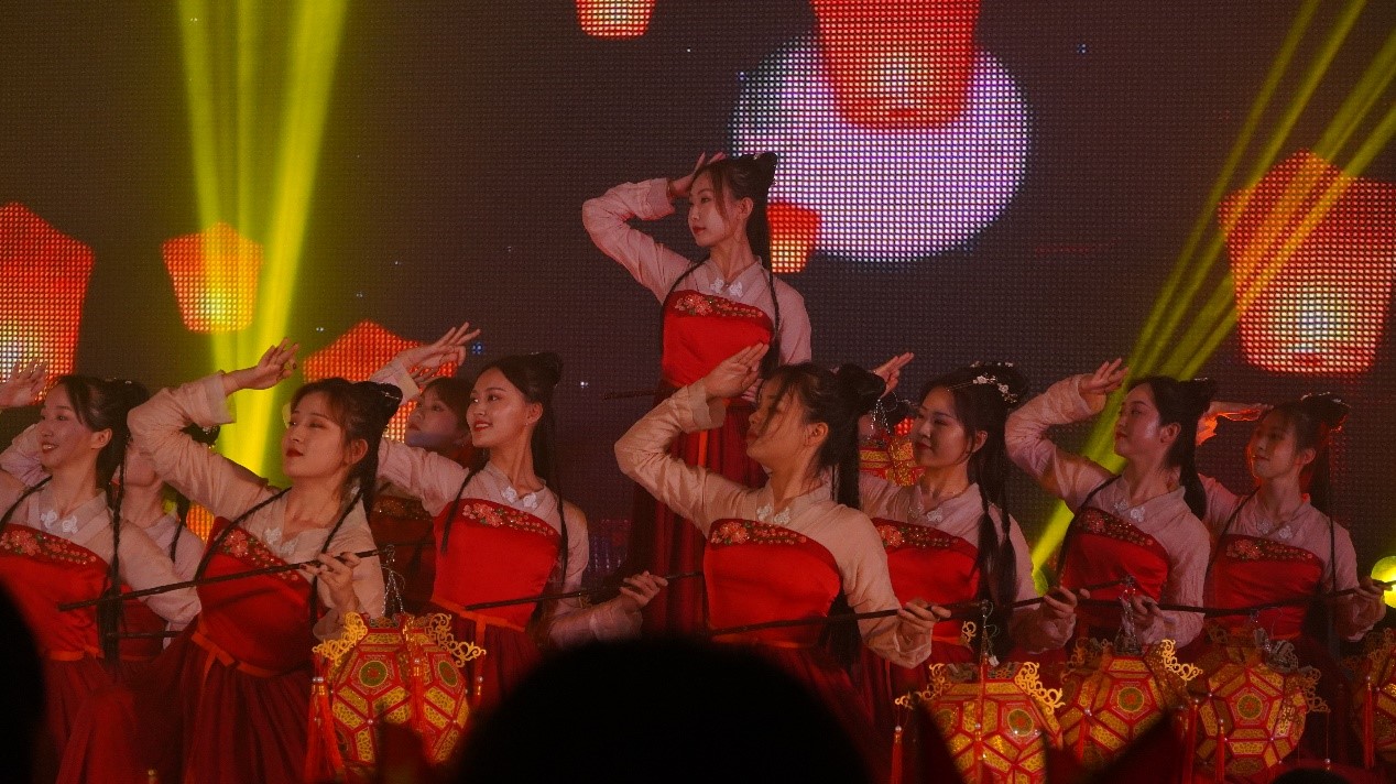 “时过境迁,战火不再,爱党爱国之情却如年复一年的山丹丹花一样红艳依旧。”主持人的嗓音响起,观众随着古典民乐的合奏声渐渐沉醉。悠扬的乐音仿佛带观众飞往了那个战火纷飞的年代,感受到了军民鱼水情。语言表演队动情的表演配合舞台效果呈现的《风声》,有种俘获人心的力量。舞蹈队献上的柔情舞蹈《元夕灯影》,将中国传统文化的柔美发挥到极致。器乐队的一首《翻身的日子》,激起现场观众心里那强烈的民族自豪感。