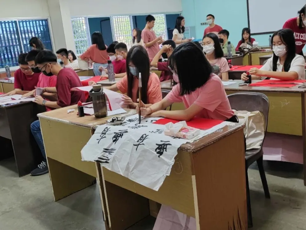 “侨旅大马”实践团在马来西亚槟城与吉打吉华中学联合举办了新春校园“挥春”活动,吸引了近千名师生参与,通过对中国非遗文化的线下实践教学,增加海外华侨与华裔的民族自豪感。