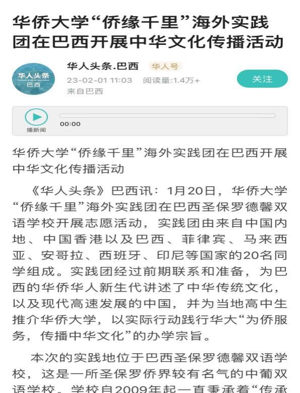 “侨缘千里”海外实践团海外实践活动得到当地媒体报道