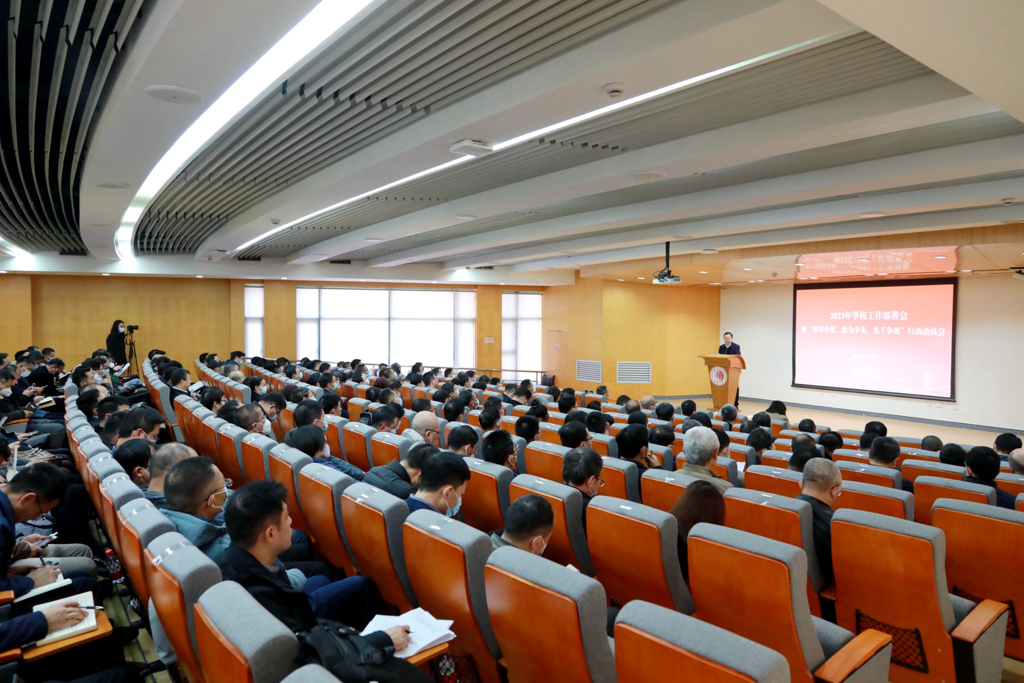 2月28日下午,我校召开2023年学校工作部署会暨“深学争优、敢为争先、实干争效”行动动员会。校党委书记徐西鹏主持会议并讲话,校长吴剑平作工作布置。其他在家校领导出席,全体中层干部与会。