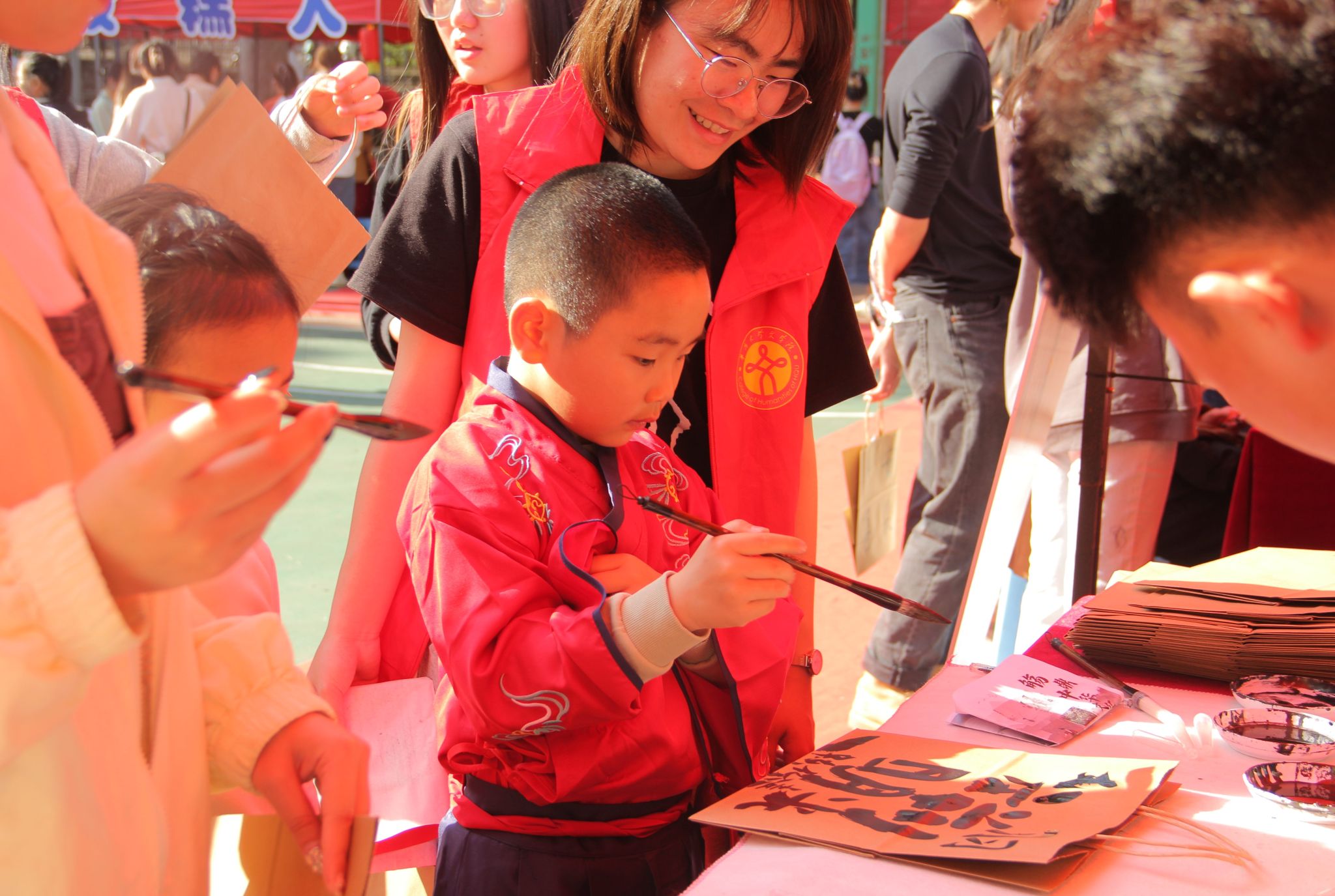 开幕式以“汲汲拢海丝,拳拳寄华夏”为主题,结合闽地文化分为“知礼汤汤”“礼遇中华”“曲水流觞”三个篇章。其中,“知礼汤汤”和“礼遇中华”篇带领华园师生在“传统遗韵”“诗书礼乐”中漫游,一同欣赏艺术精品,有宋式点茶的茶经茶道、南音和古琴的余音绕梁、木偶戏的活灵活现以及蟳埔风情舞蹈的海丝韵味;师生在“曲水流觞”文化游园会里现场体验妆糕人、提线木偶、永春纸织画、宋式点茶、拓印、蹴鞠投壶等多元传统文化技艺,切身体味文化魅力,传承文化血脉。