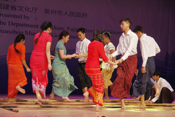 缅甸学生表演民族舞蹈《竹竿上的小碎步》