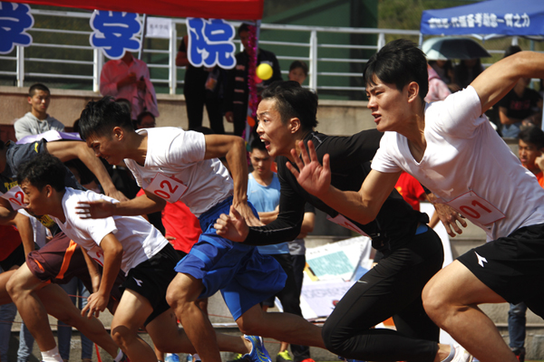经过两天有条不紊、紧凑激烈的比赛,18个代表队参加的60项比赛结果全部出炉:最受关注的百米飞人大战中,政治与公共管理学院张正以12秒06的成绩夺得男子项目的冠军,工商管理学院谢嘉惠则以14秒94的成绩成为本届“女飞人”;工商管理学院陈广源、法学院熊乾分别包揽了1500米、5000米两项比赛的冠亚军;法学院于鸿一人独得女子400米、800米两枚金牌;团体赛中,万米接力和女子4*100米接力冠军都被工商管理学院收入囊中;田赛方面,男子跳高比赛金牌被有着拉风名字的经济与金融学院老挝学生维拉风摘得。