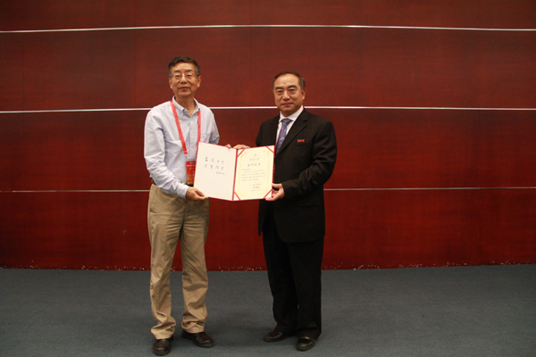 贾益民并向李冀闽颁授“华侨大学校友工作杰出贡献奖”荣誉证书。
