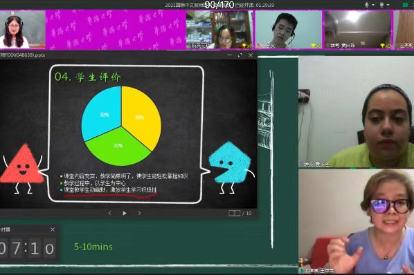 据了解,为保证研修项目的教学效果,在国际中文教育办公室的统筹下,我校综合研究学员们的中文水平和职业特点,分班分组开展特色教学,由预科教育学院和华文学院共同承担授课任务,整合预科教育学院在中文速成教学实践领域的优势,以及华文学院在中文作为第二语言教学、文化教学等方面的优势资源,量身定制课程方案,促进国际中文教师提升专业知识和职业素养。比如分不同课型组织微格教学和翻转课堂,开展教学技能专项微格训练;开展国际中文教育与新媒体发展相适应的直播带货体验活动等丰富的语言实践活动;组织观摩预科教育学院留学生中文学习课堂;组织多元中华语言文化实践活动,让学员在情景体验和动手实操中感知中华文化的魅力;邀请了40多位教师开设专题讲座,增进学员对当代中国的了解,提升学员国际中文教师全方位胜任能力等等。
