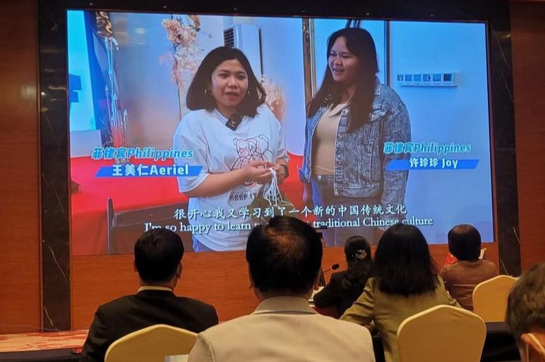 活动现场播放《菲律宾留学生沉浸式体验端午包粽子习俗》短视频