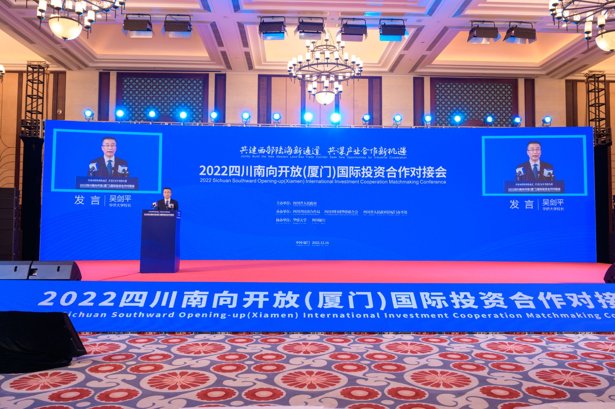 12月16日,由四川省人民政府主办、华侨大学参与协办的2022四川南向开放(厦门)国际投资合作对接会在厦门举行。校长吴剑平,国内合作办、校友总会、厦门校友会负责人及部分校友代表出席对接会。
