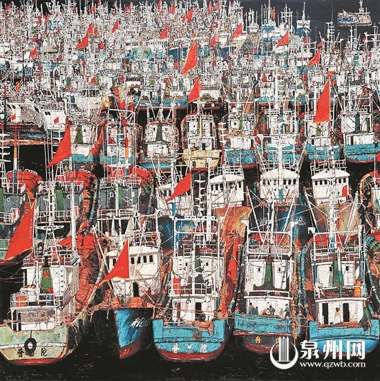 这一切都被老师看在眼里,2011年,老师推荐他去了中国书画圣地——浙江舟山跟一个漆画界的高师学习。近两年的时间里,他与世隔绝,专心研修。出关后,他的漆画处女作《休渔期》首次参加全国大展,获得好评。这给了他很大的鼓励。第一次参加了全国大展。这次的成功给了他很大的鼓励。此后,他在探索大漆画技法的同时,开始把每一张漆画作品当做故事,倾诉、表达周围的事和内心。