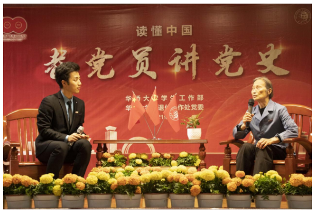 为促进境内外学生融合,学生处、离退休处、关工委等联合举办“读懂中国——老党员讲党史”活动,鼓励内地学生党员骨干与港澳台侨学生采取“一对多、面对面”交流访谈的形式,采访老领导、老战士、老专家、老教师、老劳模等“五老”党员,深入挖掘老党员矢志不渝的入党初心、为党奋斗的故事和对党忠诚的情怀,从老党员身上汲取精神力量。“保护地方方言的劳模——王建设院长”“为国家找丰富矿产去——张樵英老师”等老党员事迹,给港澳台侨学生留下深刻印象。