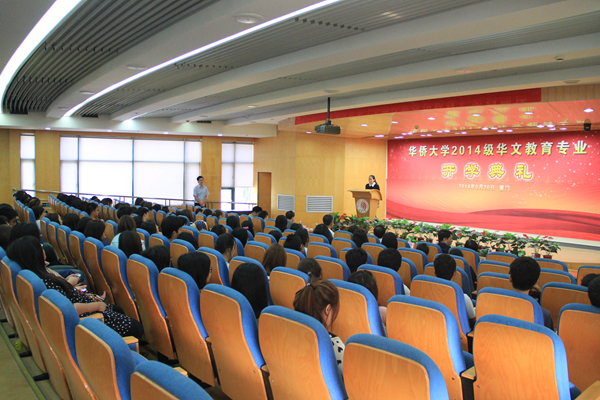 今年9月,华侨大学华文教育专业迎来了近130名新生,他们分别来自印尼、泰国、越南、菲律宾、奥地利、美国、蒙古等国家。 26日下午,华侨大学在厦门校区王源兴国际会议中心为2014级华文教育专业举行开学典礼。据悉,该专业是中国政府为帮助海外开展华文教育、解决师资短缺问题而特别开设的,主要面向海外招收有志从事华文教学的华裔青年。 福建省侨办领导闵蕙君在致辞中指出,福建省历来重视海外华文教育事业,为了适应海外华文教育工作的需求,省侨办于2003年与华侨大学举办印尼“汉语师资本科学历班”,后又将该项目转为华文教育专业,项目毕业生深受海外华教界青睐。她称,海外华文教师为了中华文化在海外薪火相传,辛勤耕耘,在世界的各个角落播撒着中华文化的种子,是塑造“民族灵魂”的工程师。她希望同学们珍惜时光、努力学习、团结友爱、学有所成,将来成为居住国各地当之无愧的“民族灵魂”的工程师。 华侨大学副校长刘塨称,作为中国政府面向海外开展华文教育的重要基地,华侨大学密切关注并及时回应着海外华侨华人的教育需求。在国务院侨办和福建省侨办的大力支持下,学校于2003年启动了印尼师资培养项目,2006年开办了华文教育专业。至今,该专业已有四届毕业生回到居住国,从事海外华文教育,传承中华文化。他勉励同学们,从事华文教育传承是一项使华族文化薪火相传的神圣工作。希望他们勤学苦练,掌握扎实的汉语专业基础,注重教师技能的培养,了解悠久的中国历史与璀璨的优秀传统文化;更要树立远大的理想和宏伟的目标,矢志不渝地推动海外一线华文教育事业,将来为中华文化的传承与传播贡献自己的力量。 来自印尼的杨镕霞代表新生发言称,他们将会珍惜这次难得的学习机会,遵守纪律,努力学习,争取为中国与各国的文化交流作出贡献。 福建省侨办文宣处处长齐志、菲律宾侨中学院院长黄婉蓉,华侨大学华文教育处处长赵明光、华文学院党委书记纪秀生等出席当日的开学典礼。  福建省侨办领导闵蕙君致辞