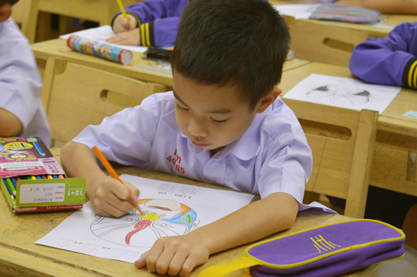 9月5日至9日,泰国农业大学孔子学院在下设曼谷基督教学校(Bangkok Christian College,简称BCC)孔子课堂举办了为期一周的“京鸿一瞥”画脸谱活动,一年级、二年级20个班级的近一千名学生参与了此活动。