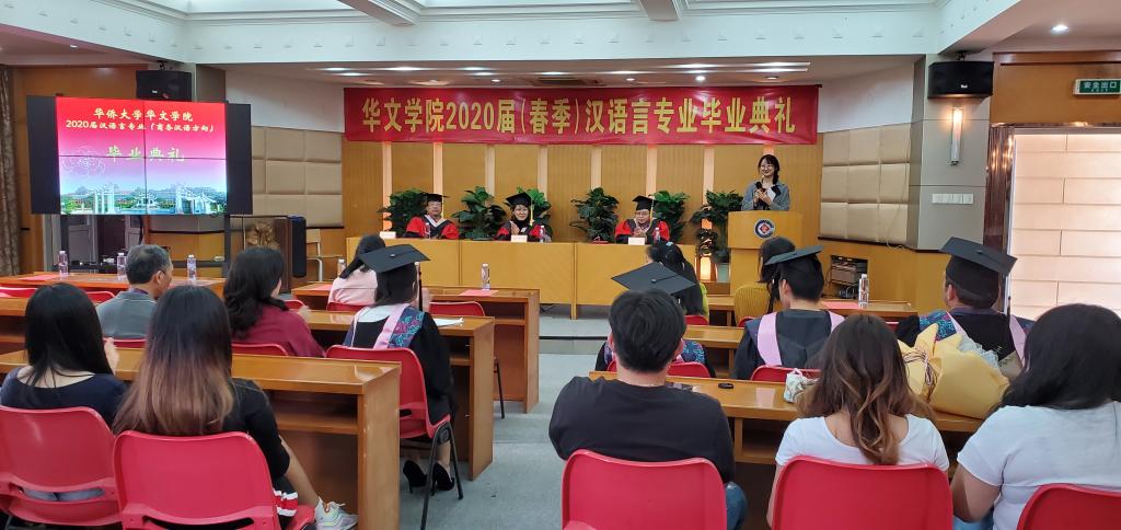 12月24日下午,华文学院举行汉语言系2020届(春季)留学生毕业典礼。华文学院陈旋波教授、郭中副教授、盛译元博士,教学办公室、招生办公室、汉语言系的部分老师,以及来自泰国、印尼等国家的学生家长共同参与了本次毕业典礼。