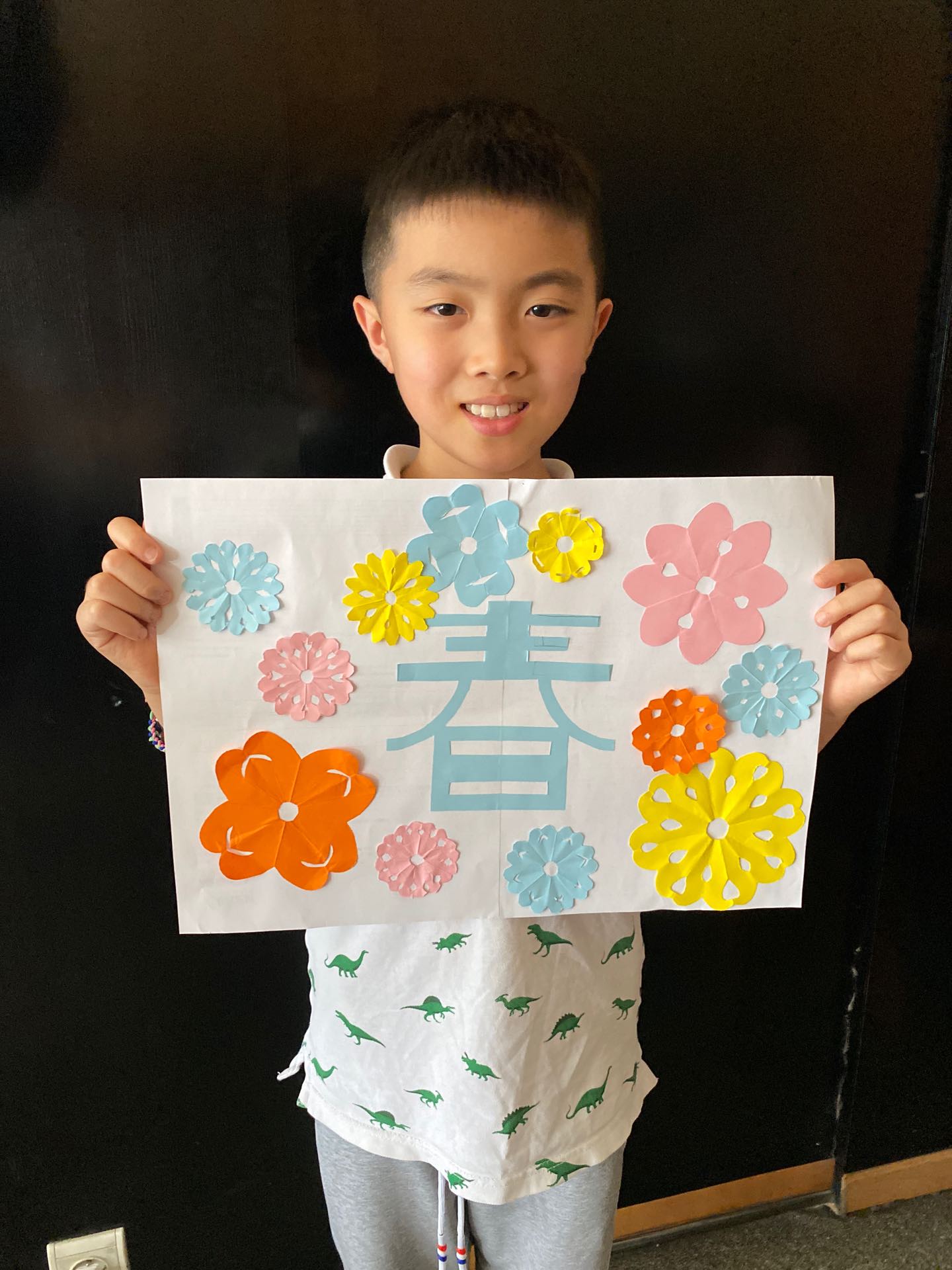 学生展示剪纸作品
