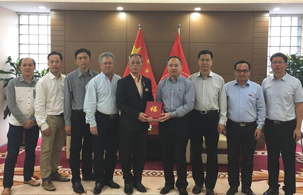 毛里求斯华商总会会长黎广来(左五)一行访问我校