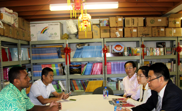 访问斐济期间,吴季怀一行走访华侨大学斐济招生处,并会见招生处主任赵福刚及华侨华人代表,了解斐济招生处的工作情况,听取代表们关于招生工作的意见、建议,了解斐济经济建设对人才的需求情况。