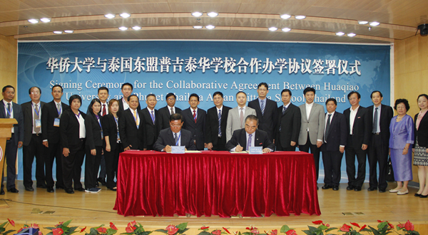4月22日,华侨大学与泰国东盟普吉泰华学校签署合作办学协议。根据协议,华侨大学将在东盟普吉泰华学校设立普吉泰华旅游教育中心,双方联合开展旅游管理专科招生与教学、旅游从业人员培训项目等,为当地支柱产业服务,培养旅游相关专业人才。双方还将开展华文教育,本科生、预科生教育合作等。