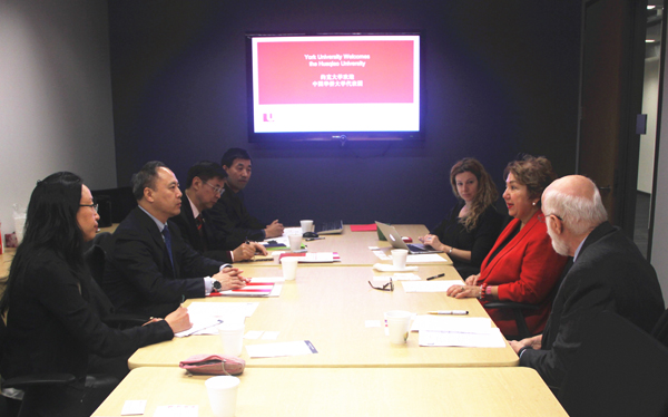 约克大学位于加拿大第一大城市多伦多北郊,是全加拿大综合规模第三的大学,拥有来自全球超过170个国家的5000多名国际留学生。约克大学副校长Marilyn Lambert-Drache接待了我校代表团一行。她介绍了约克大学的基本情况以及与中国高校开展合作的相关情况,表示期待能与华侨大学建立良好的合作关系。曾路介绍了华侨大学的办学特色,希望今后双方能加强合作,不断拓展合作领域。