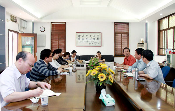 厦门市侨办文宣处负责人胡庆斌一行到华文学院调研座谈