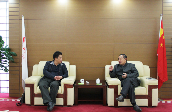 校长贾益民与厦门技师学院院长张家雄(左)交谈