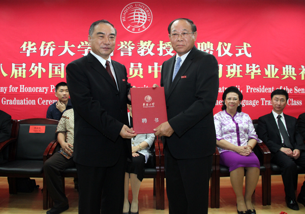 校长贾益民为尼空博士颁发华侨大学名誉教授聘书