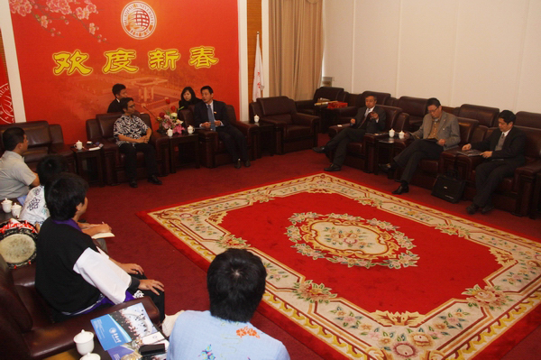 6日下午,日本冲绳县文化观光体育部部长平田大一一行来校访问。副校长吴季怀在陈嘉庚纪念堂接待室会见来访客人。 吴季怀对平田大一一行的到来表示欢迎。他称,华侨大学与日本高校在科技、教育、人才培养方面一直有着广泛的联系,希望平田大一部长的到来能给两国文化交流架起桥梁。他并简单介绍了华侨大学的发展情况,指出华大学生课余活动十分丰富;对太鼓发祥地的老师来校指导学生太鼓队感到欣喜。 平田大一表示,今年是中日两国邦交正常化40周年,也是福建省与冲绳县建交15周年,希望以此为契机,加强与华侨大学在文化等方面的交流。他还欣然邀请华大太鼓队到日本冲绳县参加今年十月份的世界太鼓大会。 座谈结束后,平田大一在陈嘉庚纪念堂会议室为我校日语专业学生作《文化架起友谊之桥》专题演讲,通过影像资料介绍、现场表演太鼓等方式,介绍了冲绳县文化以及与中国的历史渊源。平田大一还观看了华大太鼓队表演,并进行指导。