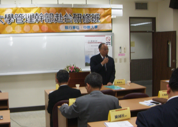 12月6日上午,我校管理干部第二期赴台研修班开班仪式在台湾中原大学举行。中原大学校长程万里、副校长胡为善,推广教育中心主任邓治东、国际事务中心主任林久翔及华侨大学管理干部第二期赴台研修班全体学员出席开班仪式。 程万里校长代表中原大学对华侨大学管理干部第二期研修班学员表示热烈欢迎。他回顾了研修班的历史,称华侨大学派遣管理干部到中原大学、交通大学学习交流有十分重大的意义,是两岸大学交流合作的典范,也是两岸高等教育交流合作的创举;他希望全体学员刻苦学习,多提宝贵意见,多交流沟通,并预祝大家在台研修学习期间度过一段愉快的校园时光。 研修班班长、人事处处长王秀勇代表全体学员对中原大学的盛情款待和精心安排表示衷心感谢,并代表学校感谢中原大学胡为善副校长率团参加华侨大学建校50周年庆典活动,同时欢迎中原大学的各位同仁有机会到华侨大学访问。他表示,全体学员一定不辜负学校的期望,遵守有关研修纪律,带着课题研修、带着问题思考、带着成果而归。 开班仪式上,研修班学员、教务处处长池进代表华侨大学向中原大学赠送了纪念品。开班仪式后,中原大学人文学院院长黄昆锦教授做了题为“西方哲学与教育”的首场讲座。 据悉,我校管理干部第二期赴台研修班是于12月5日晚抵达台湾的,他们将通过课程学习、岗位见习、工作体验等方式,开始在台湾中原大学、交通大学为期四十天的学习交流活动。